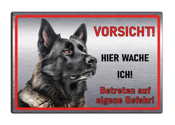Warnschild Hund „Hier wache ich“ – Deutscher Schäferhund aus Aluverbund in Edelstahl-Optik - Hundeschild wetterfest M4 - Kopie