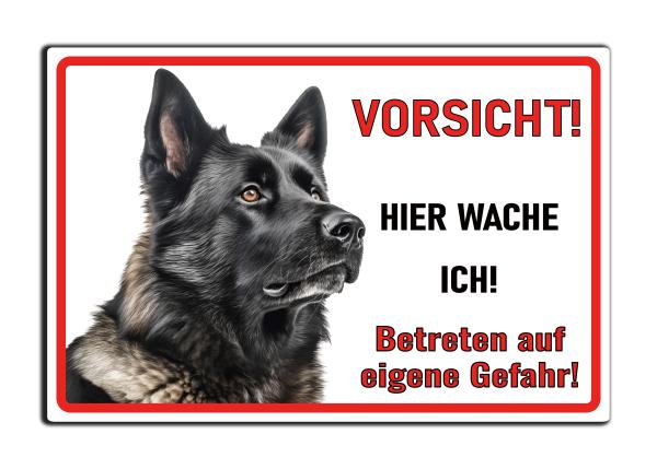 Achtung, wachsamer Deutscher Schäferhund! Mit diesem Warnschild setzen Sie ein deutliches Zeichen: „Hier wache ich – Betreten auf eigene Gefahr“. Perfekt für Ihren Haus- oder Gartenbereich.